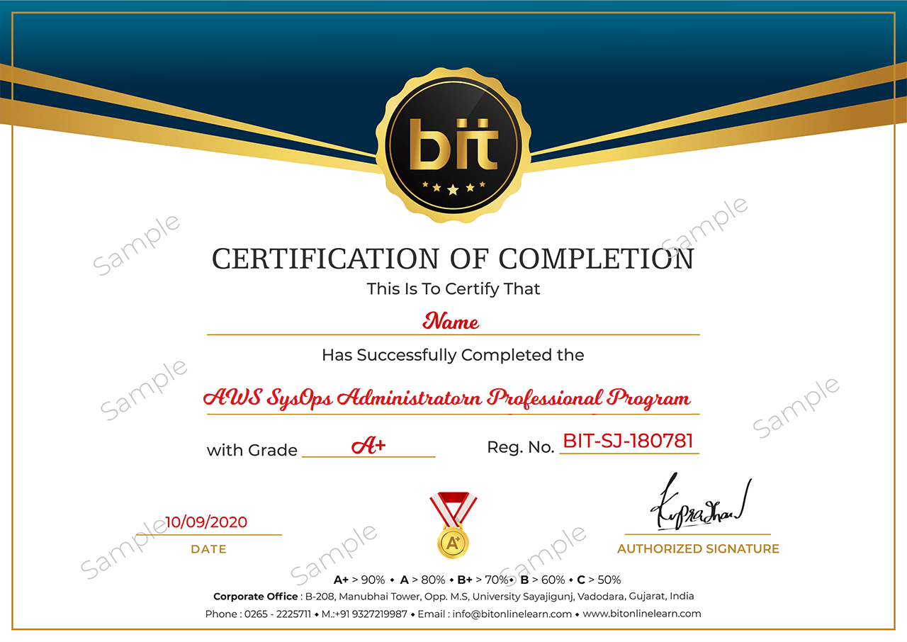 BIT’s AWS SysOps online training is curated by industry experts to assist system engineers and IT administrators to get expertise in deploying, operating, and managing fault-tolerant systems on the AWS cloud platform. This course is aligned with clearing the AWS SysOps administrator Associate Exam in a single attempt. The AWS Certified SysOps Administrator – Associate examination training is intended for systems administrators in a systems operations role with at least one year of experience in deployment, management, and operations on AWS.