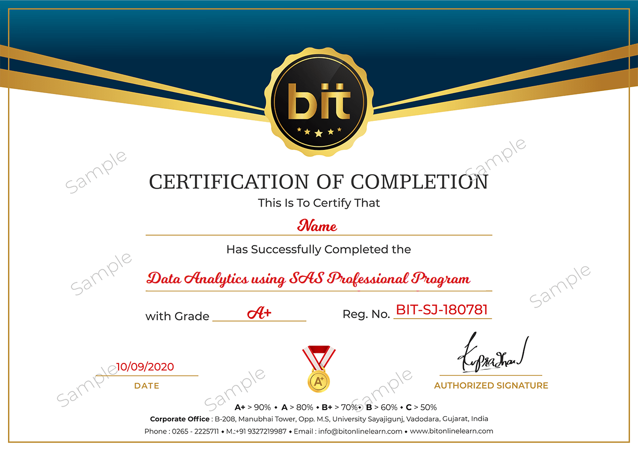 BIT’s Data Analytics using SAS Online Training Course is an industry-designed course, designed for you to fast-track your career in the domain of data analytic. This course will cover Base SAS programming, Advance SAS programming with SAS/ ETS. SAS/ETS® (Econometrics and Time Series) training imparts the knowledge and skills to work on the models and techniques used for understanding the data and predicting the future based on the analysis carried over it.
